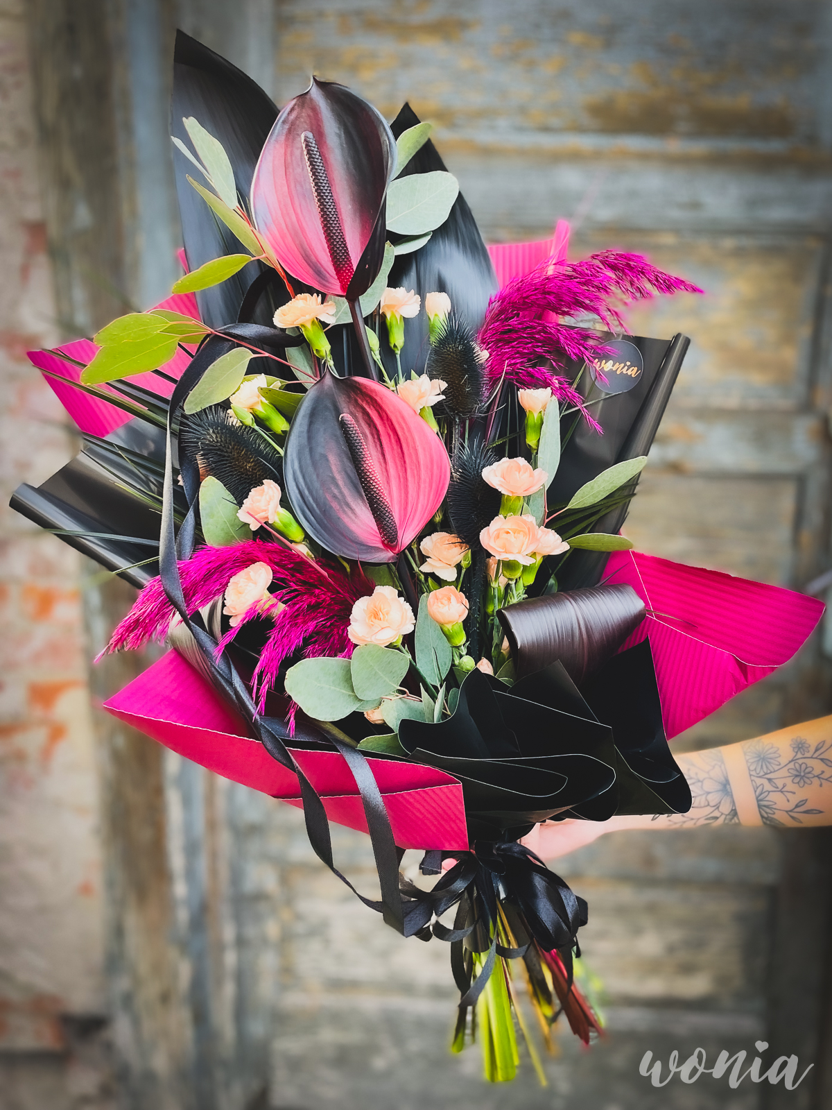 • kompozycje z kwiatów żywych oraz sztucznych,